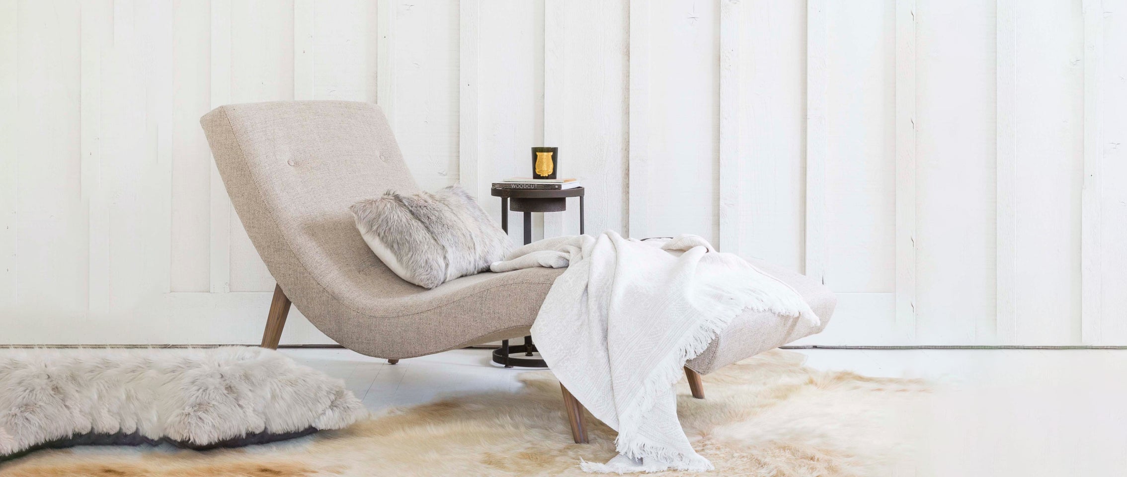 A historic log cabin, reimagined for a preservation-minded couple. The interior feels simultaneously seamless and sophisticated, open and intimate. The Moran Swivel, seen here, anchors the space. Nesting trays provide a home for books, coasters, or whatever needs wrangling in a lived in space. Wool-linen blankets and pillows add layers of texture throughout.